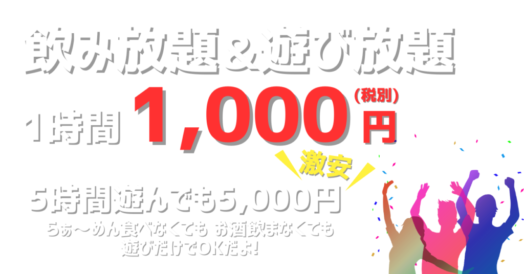 - 店内提供のフード類やセルフ飲み放題以外のドリンク等
